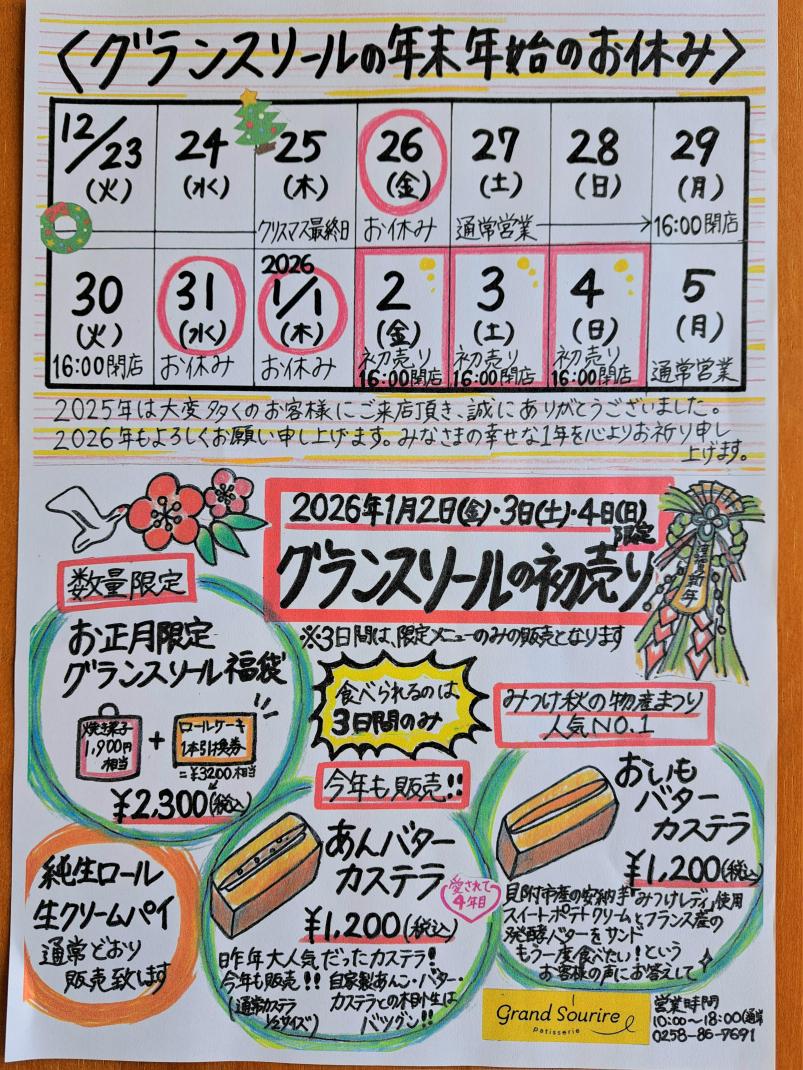 1月2日.3日.4日は初売りでお正月限定メニューの販売となります。